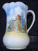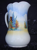Estate Pottery JUG / Pitcher ~~ LARGE ~~ 10.5 Inches High Pretty " SUMMERTIME " Pattern England