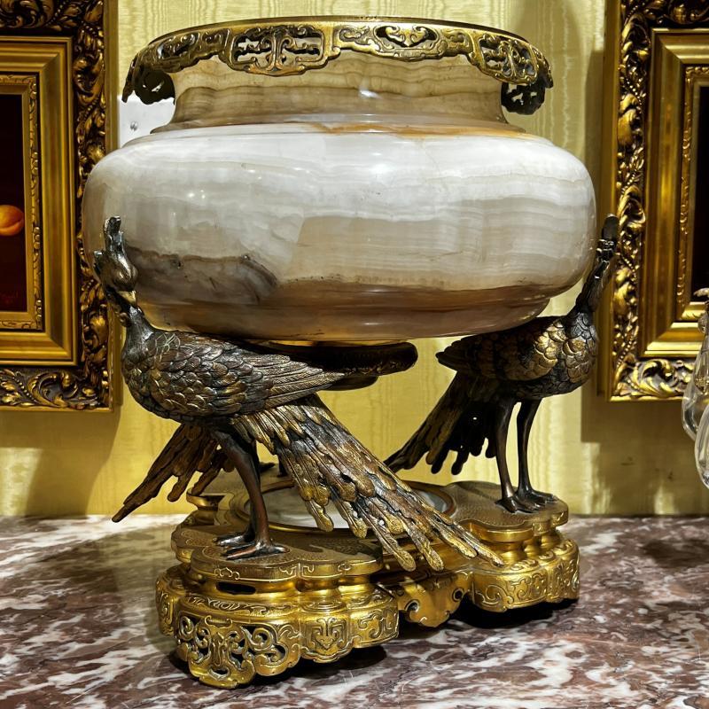 Eugene Cornu Japonisme Bronze and Onyx Centerpiece
