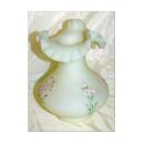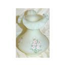 Fenton Custard Glass Ruffle Vase Hand Painted & Signed, Honeydew Color with Pink Flowers signed by S. Lesinger,