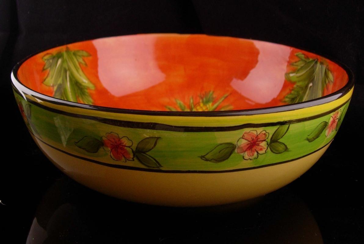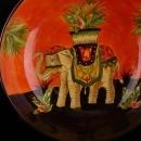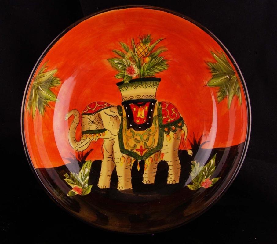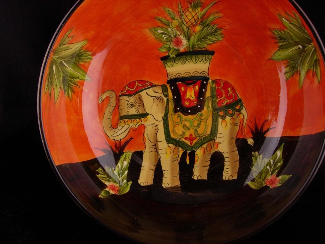 Folk art large bowl - Elephant handpainted - 11" pasta bowl - orange bohemian gift - good luck gift - circus animal