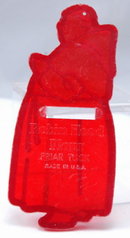Friar Tuck Red Plastic Cookie Cutter Marked Robin Hood Flour. It is rare. It looks like handle has been broken off.
