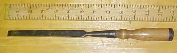 This is a nice clean 1/2" wide x 12.5" long socket firmer chisel marked "FULTON". It's in good shape, sharp and ready to use. There is no rust, but some minor pitting noted on the 1/2" width sides mostly, should not effect normal use. The hardwood handle has the leather cap end, and is solid with no cracks or damage, very nice shape. A good quality chisel!