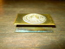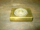 Germany King Crown GOTT MIT UNS inscription German military World War One matchbox case holder. Solid brass metal book look design. Slight bend, no cracks or breaks. Subtle texturing along inner binding for match strike area.