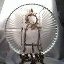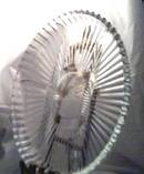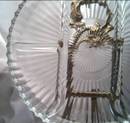 A nice round clear glass relish tray. The design on the tray is very much like the "Queen Mary(Prismatic Line)/Vertical Ribbed" by Hocking Glass Co. I have found no chips or cracks. The tray measures approx. 10" across.