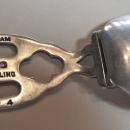 This folding measuring spoon has a table spoon and a tea spoon which folds two times which makes it very portable. Engraved on the Table Spoon are the initials, "R.B.F.". Marked with the Gorman name and Buyer pays S&H. We accept payment from all credit cards via Paypal. You can mail a money order or check to us for payment however shipping will be delayed if payment is made with a personal check.
