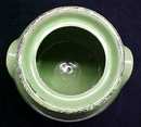 Offering this wonderful old pickling crock / preserving jar in the perfect country cottage - shabby chic green with black banding around top and bottom. Measures 9 1/2 inches tall by 7 1/2 inches in diameter. Applied ear handles. Very good condition, no cracks, a few nicks on inside top rim and one very small chip on bottom underside. No lid. Very light crazing all over and light wear on the black trim; which adds such character. No identifying marks as to maker. Age approximately 1920-40's, could possibly be older, could not find any reference to this color. This is a must have piece for your country primitive, cottage, or shabby chic decor!