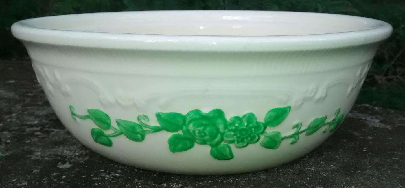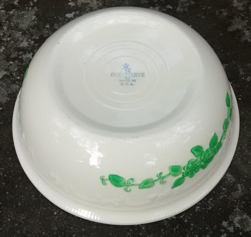 Vintage Homer Laughlin Oven-Serve Embossed Casserole Bottom Green Floral