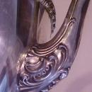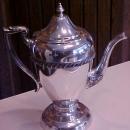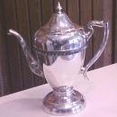 This is a nice silver plated teapot, made by Hartford Sterling Co. Phila. PA Ca. 1901-1930's. It has nicely detailed decorations, considered to be of the 1920's period style. It is 10" tall with a good hinged lid. It is in good+ condition with very little silver plating loss, a few tiny scratches and dings noted.