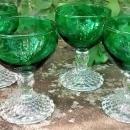 Vintage Hocking Bubble Foot Forest Green Liquor Cocktail Glass Set/4