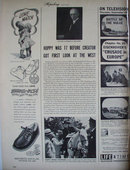 Hopalong Cassidy 1949 Article. This black and white September 12, 1949 article states Life goes on tour with Hopalong Cassidy. Hoppy was 17 before creator got first look at the west. Pictures shows Hoppy creator Author Clarence E. Mulford. Also pictures of Hopalong on tour greeting fans. also full page picture of Hoppy holding Small fan wearing Roy Rodgers Boots. Shown in pictures are Mrs. Gertrude Kaufman, Mrs. Clara Hancock, Mrs. Nora Mc Cabe, D.B. Mears, DeLesseps Morrison, and Jack Shropshire. Magazine tear sheet picture is taken through plastic and may show wrinkles or crookedness that is not in the ad. This original magazine tear sheet measures 10 inches wide by 14 inches tall.