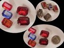 Rich ambers, reds and blues make up this set of really large stones. The brooch is 2" long and the earrings are ¾" long. They have some patina on the silver to show their age. Stones are in great shape.