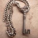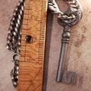 This piece is so large that you have to be ready to have it be your main piece of jewelry when you wear it. The vintage gunmetal key measures a whopping 3 3/4" long and looks like it would fit in an old jailhouse door. The heavy thick chain has intricate ribbing on each link and it measures 15" long x a little over 1/2" wide. This is not for the shy, so be ready to get attention when you wear this. It is in great condition too!. MUCH nicer than the photos.