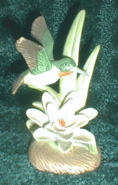 Text on the underside reads: "Royal Heritage, "Birds in Flight" Collection, FLIGHT TO SPRING, The Hummingbird's Odyssey, Taiwan". Stands about 5" tall. No chips or cracks. Good used condition. Nice display piece. Insurance is included in shipping and handling. Contact seller for international rates.
