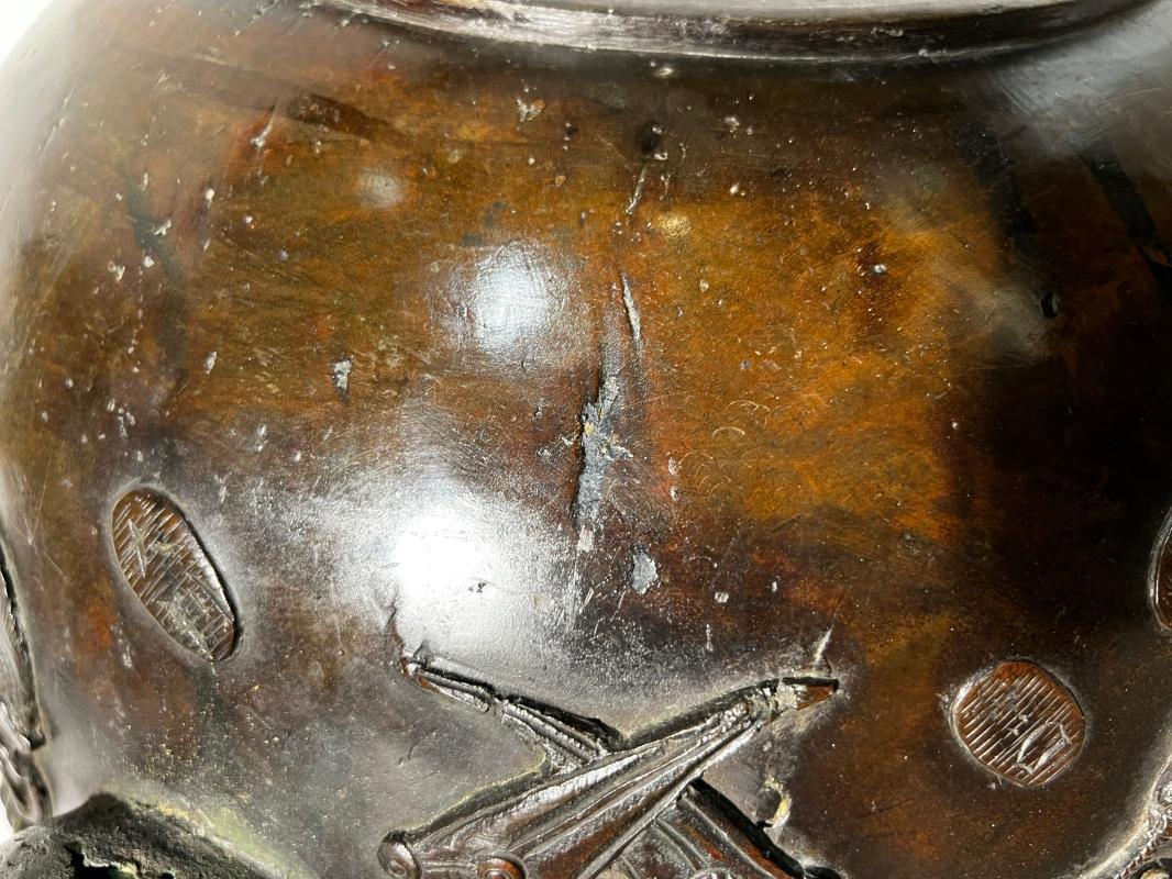 Meiji Japanese Bronze Vase -- Treasure Sack of Hotei or Daikokuten
