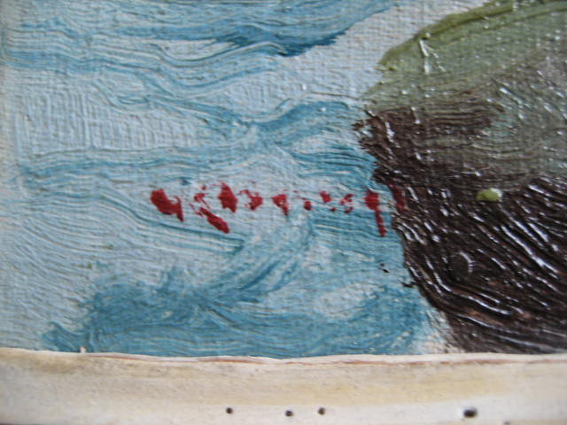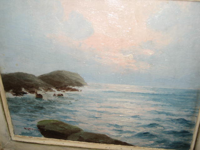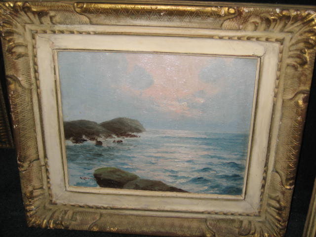 Oil on artist's board signed lower left "Cavalleri", (Vittorio Cavalleri, Italian, 1860-1938), "Seascape". Well listed artist. This work alone can be purchased by itself or as a pair (item # 3270). Both works have always been together and are in fine original condition including their original frames (see photo) and only exhibit a recent surface cleaning to each. As a pair, they can be purchased for $2,850. Dimensions for each work: 15" by 13 1/4" framed; 10" by 8" board size.