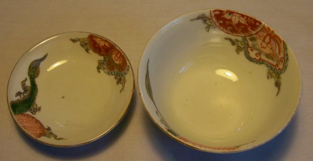 Antique Japanese Arita/Imari Covered Rice Bowl Set/4 Circa 1900