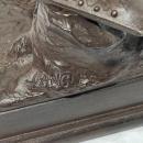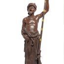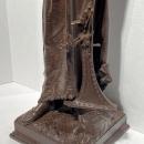 Our bronze, entitled La Sentinelle, after an original model by Joaquin Angles (1865-1927) depicting an Arabian sentinel with rifle, stands 35 in (89 cm) tall and features a dark brown patina with underlying reddish brown patina and gilding on the rifle which was cast separately