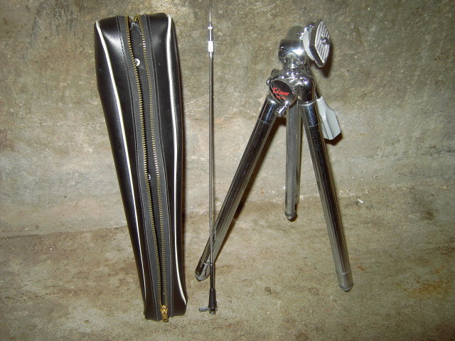 Quality Japanese made Kalimar P E 8 camara tripod stand with telescopic expandable detractible legs. Shutter arial & Kalimar marked vinyl carry bag included.