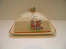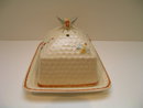 Delightful English Kensington China Covered Beehive Butter Dish in Excellent condition with no cracks or chips. It measures at the base 7 1/4" x 5 1/2" x 4 1/2" high.