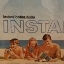 Kodak Instamatic Movie Cameras And Still Cameras 1966 Ad. This 2 page color may 21, 1966 ad states Now for movies, slides or snapshots, you just drop in the film and shoot. Instant Loading Kodak Instamatic Cameras. Picture shows seven people on sandy beach. each has a Kodak Instamatic Camera. Magazine tear sheet picture is taken through plastic and may show wrinkles or crookedness that is not in the ad. This original magazine tear sheet measures 10 1/4 inches wide by 13 1/2 inches tall.