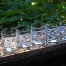 11.75" tall Decanter with oringal Ball Stopper with 6 3" Neet shot glasses with SINGLE BUBBLE .