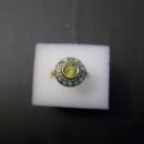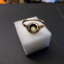 Ladies 14 Karat Yellow Gold Ring Containing One Round Bezel set Peridot and 14 Opals