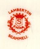 Lamberton Scammeli Restaurant China Oval Platter. From Le Kas` Restaurant, 422 Main Street, Peoria, Illinois. Gold floral motif with royal blue background border. Platter is 10 1/4" long and 7" wide. Plate is in very good condition, no chips or cracks.