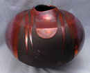 Ceramic artist Tony Evans, is a well known amongst raku collectors for having developed his own unique style of firing Raku. The wonderful large vase has a copper drip glaze & a plum purple over the black base. It has a unique shape that is hand formed. The condition is excellent however there are some white scuffs or something over the back on one side. Not sure what it is.