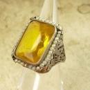 Large setting Antique Edwardian Citrine Pearl sterling ring Ornate filigree size 7
