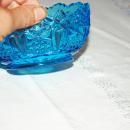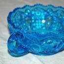L.E. SMITH PRESSED BLUE GLASS HANDLED NAPPY BOWL QUINTEC HERITAGE 5.5"