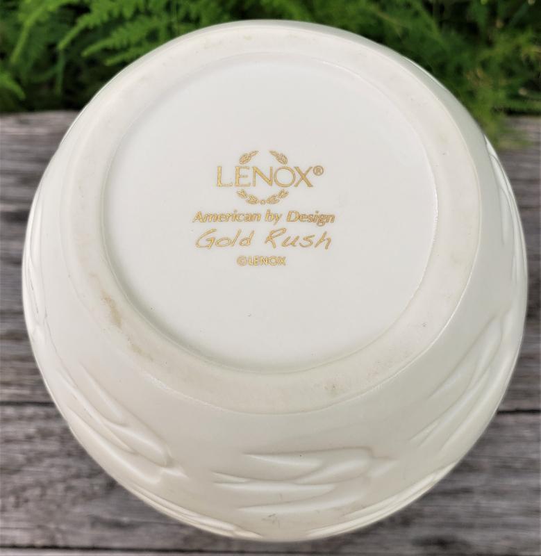 Lenox porcelain vase from the Gold Rush Series. Cream-colored porcelain with molded design of birds in flight, some accented with gold. Measures 10"H. Made between 2014-18. Nice condition with no chips or cracks. Inglenook Antiques...Established 1989.