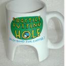 Golf Practice Putting Coffee Mug by Shoebox Designs. Funny novelty golfer's item coffee cup , mug on arched feet so a golf ball can be putted through it. Plus you can use it for coffee too.