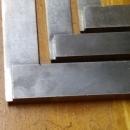 Offering this good clean group of 3 steel solid squares in sizes ranging from 2.2" to 6" size. These squares are not marked by the maker and are a B-grade rating as they are not hardened tooth steel, but most likely a pre-hardened steel or case hardened as there is evidence of tiny ding along the edges. These squares are great for woodworking shops or light use on metals. These 3 sell for one money. They have been inspected and found to be accurate with minimal wear.