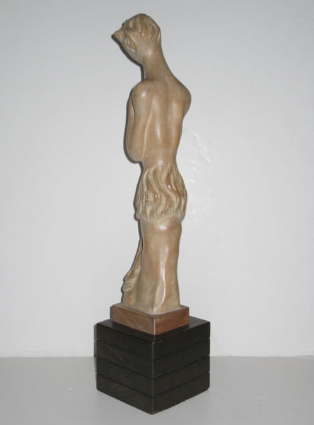 Heifetz Mid-Century Modern Limed and Sculpted Wooden Figurine of a Faun