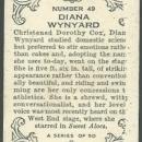 Diana Wynyard. Film, Stage and Radio Stars, #49 of a Series of 50. Ardath Tobacco Co, Ltd. Manufacturers of State Express and Ardath Cigarettes. Card is 2 3/4" high and 1 1/2" across. Card is in good condition, slight wear at edges, surface tear at edge on back.