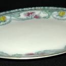 Lovely art deco style serving platter Royal Staffordshire Pottery that measures 13" x 9.25" . Decorated with pink and yellow flowers and garlands of bud and leaves. And the rim has inner locking cable like design bordered by a line of gold leaf on either side. It is very pretty.