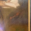 Our painting by Adolphe Pierre Francois Leofanti (1838-1890) depicts Roger freeing Angelica. Period ebonized frame with gilt border measures 74 7/8 by 64 1/8 inches, 163 by 190 cm.