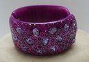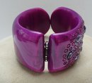 Lucite Fuchsia Rhinestone Hinged Bangle