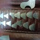 This is a nice clean, quality made radius gage set with a size range from 1/32-1/2 inch in 64ths increments. Each separate gage is marked THE LUFKIN RULE CO. SAGINAW MICH. MADE IN U.S.A. PAT. 1,825,987 and it's appropriate size on it. The pouch is a leather material with three flaps and pocket for each gage to fit into, and a snap closure in good condition. The radius gages are in top Good+++ condition. Very nice, hard to find in this condition! All gauges are in great shape. No sign of damage, rust or wear. Nice double pouch/case set. The cases are marked No. 77A & No. 77B respectively. The leather like cases are a little worn but in nice shape overall!