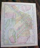 Offering this nice old 1907 map of the Ontario on one side and Quebec (Canada) on the other side. This map was published / printed by Rand McNally & Co, 1907, the Ontario map side was copyright in 1904 and so marked. The copyright date on the Quebec side is 1904. This map came from an Atlas, published 1907 - this is not a reproduction. Measures 14 x 11 inches, very good condition, no holes, a few minor finger print smudges on the outside white margins mostly, very light age toning which adds to its charm. Nice colors and details. These old maps look really great matted & framed. A handsome piece of history and unusual art piece for your home or office! Makes a nice gift!