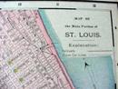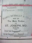 Offering this nice old 1912 map of the streets of the main portion of St Louis Missouri on one side and the streest of the main portion of St Joseph Missouri on the other side. This map was published / printed by Rand McNally & Co, 1912; copyright date on map is 1901 on the St Louis side and 1895 on the St Joseph side. Measures 14 x 11 1/2 inches, good+ condition, no holes, tears, or stains - one faint spot on margin edge, will not show when framed, light age toning which adds to its charm. Nice colors and details. These old maps look really great matted & framed. A handsome piece of history and unusual art piece for your home or office!