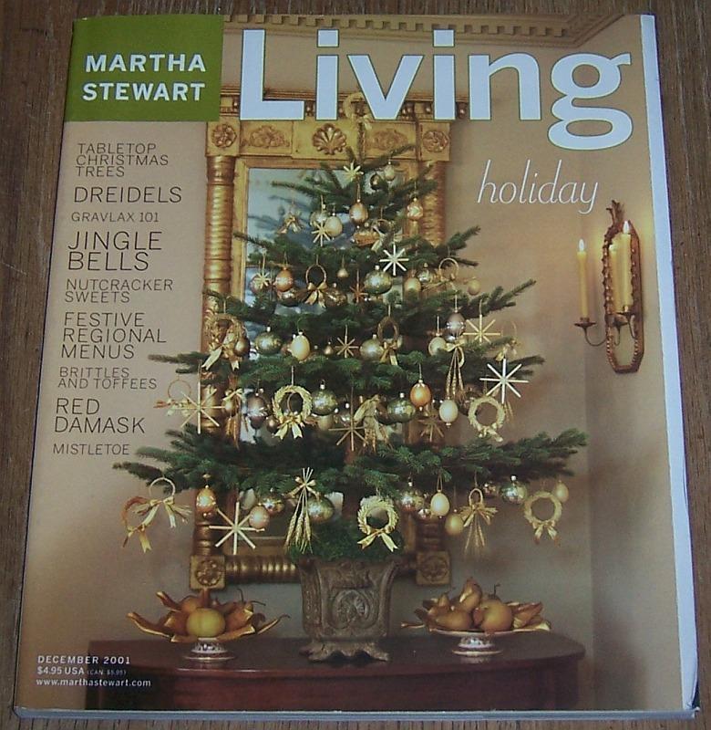 Martha Stewart Living Magazine December 2001. Holiday on Cover. Articles inside include Tabletop Trees, Jingle Bells, Four American Holiday Menus, Turkey, Red Damask, Nutcracker Sweets, and more. Filled with lots of Holiday Photographs and Advertising. Magazine is in good condition, wear at edges.