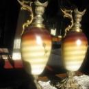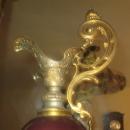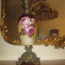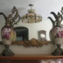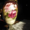 Gorgeous hand painted 19th century set of Victorian Ewers with stunning pink and cranberry roses. These are hand painted and not transfer. The artwork is superb as seen in the images. They stand 19" tall and 7" wide at the spout / handle. There are cherubs on the underside of the spout and all around nice patina. Look beautiful on a mantel or dresser.