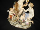 Meissen Porcelain Group Figurine of a Male Celebrating with Three Admirers At His Feet.