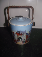 Broadhurst Ironstone serving platter blue and white scene $85.00 OBO New Hall Pottery biscuit barrel / cookie jar scenes of london tower 1900-1910 $80.00 OBO A.O.C. Globe brand shakespeare pattern tobacco jar / humidor with patent hermetic lid $99.00 OBO Collection of British Crowns 1965 - 1981 in collectors cas $17.00 OBO Coalport Cabinet Tea Trio - Imari patterns $120.00 OBO