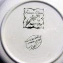 Autumn Bloom/Delphinium Orange flat rimmed soup bowl, made by Metlox of California, circa 1945. Patern #110. Obviously one of Prouty's designs. Measures 8 3/8"d. Some utensil marks and all-over crazing of the glaze as shown. No chips are cracks to the pottery, and no stains. Inglenook Antiques...Established 1989.