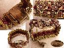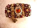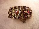 This ornately impressive hand crafted Michal Negrin bracelet is loaded with delicate flowers and Swarovski crystals. It has hand painted flower entwined with brass leaves and glass beads and brass decorartive ornaments (nickel free). The bracelet is locked with a wide 1 1/2" decorated clasp and a safety chain. This is ALL original and is heavy and in excellent condition. The center piece that holds the clasp holds a victorian design done like a tapestry. This has the original Michal Negrin tag. The bracelet measures 1 1/2" at its widest and 7" long. VintageSparkles offers Layaway on all our pieces regardless of which site it comes from.All layaway payments will need to be in the form of a check or money order only. Please remember that vintage & antique items are not mint, nor are they perfect but they sure are full of old history and charm. Please use photos to make your decisions and read our policies prior to buying so you can have an excellent experience with us. Please use this number when ordering ga4450071 If you want to see more of these pretties this is the link to my etsy store. http://www.vintagesparkles.etsy.com/ or visit our gallery on pinterest where you can see all our pieces at once http://pinterest.com/etsyvsparkles/sparkles-in-my-etsy-store/