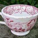Antique 1800s Red Transferware Cup Oriental Scene 2"H