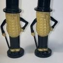 Pair of 1950's plastic Planters Mr. Peanut salt and pepper shakers. In good vintage condition with normal wear and a very small amount of paint chipping. Both shakers have plastic cork in bottom, tops have an S and P.
