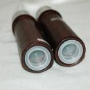 Midcentury Danish Modern Teak Chrome Salt Pepper Shakers . They are 4" tall. They have plastic stoppers. There is a label on each of them but any lettering has worn off. The condition is very good. Just a few signs of wear that is consistant with age.